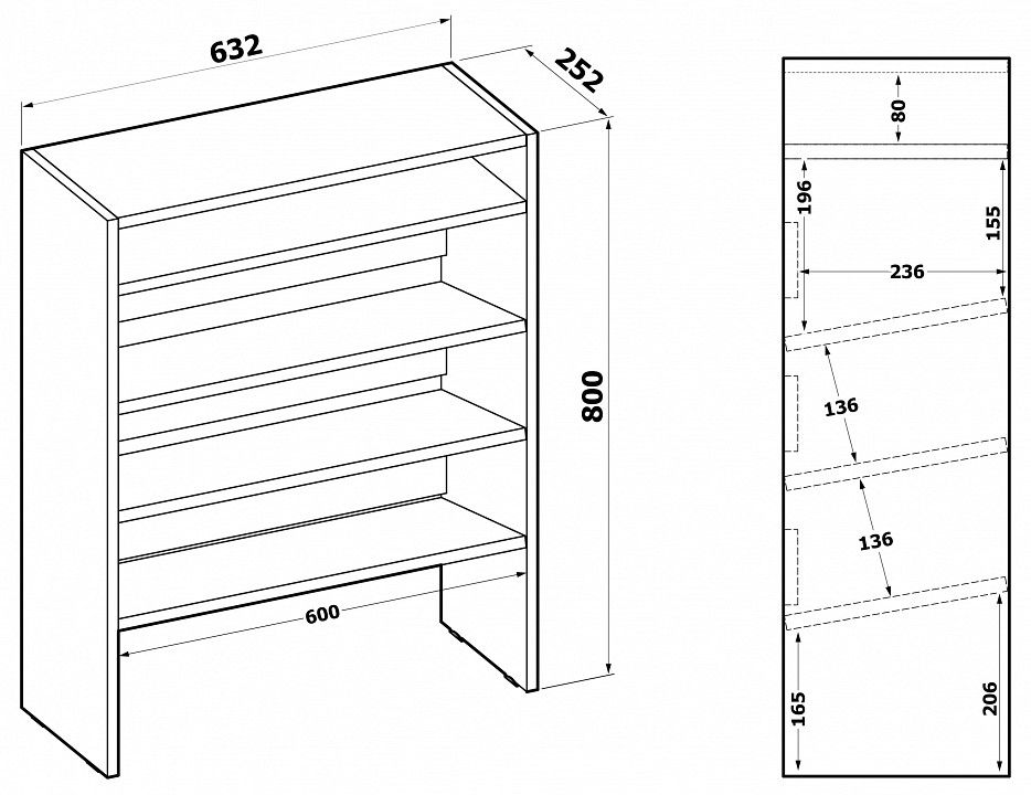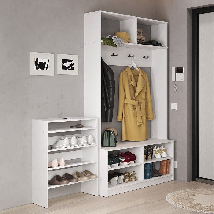 Стеллаж для обуви с открытыми полками уберет беспорядок в прихожей и обеспечит быстрый доступ к необходимой паре обуви. Небольшие габариты позволяют поместить его в маленькие, узкие прихожие и сэкономить пространство. Три полки под наклоном вмещают не менее 9 пар взрослой обуви. Открытая верхняя ниша позволяет разместить средства по уходу, зонтики и аксессуары, предоставив быстрый доступ к ним. Сверху можно разместить сумки, шарфы и шапки. Благодаря компактным размерам данная модель прекрасно впишется в интерьер любой квартиры и будет прекрасно сочетаться с другой мебелью для прихожей.