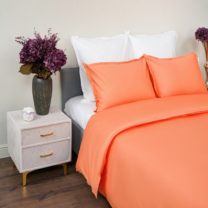 Наволочка: , 50х70, 2 шт, белый, оранжевый, 70х70, 2 шт, белый, оранжевый Пододеяльник: , 180х220, белый, оранжевый Простыня: , 230х250, белый, оранжевый