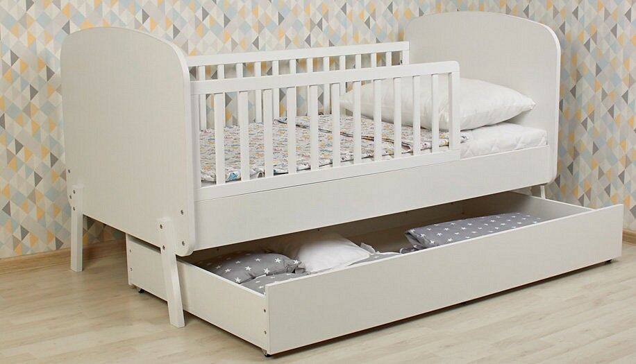 возраст: от 3-х до 10 лет, максимальный рост ребенка – 140 см, размер кровати – 1712х900х900 мм, высота от пола до нижней царги – 242 мм, размер ящика – 1580х852х222 мм, внутренний размер ящика – 1542х788х136 мм