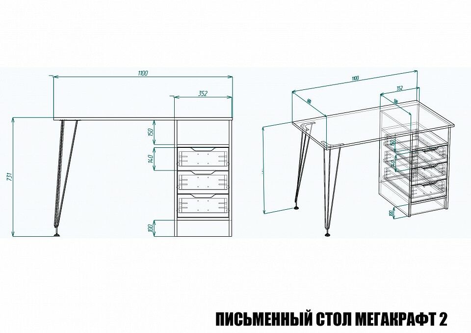Стол письменный МегаKraft 2 ПСт-МТ-002