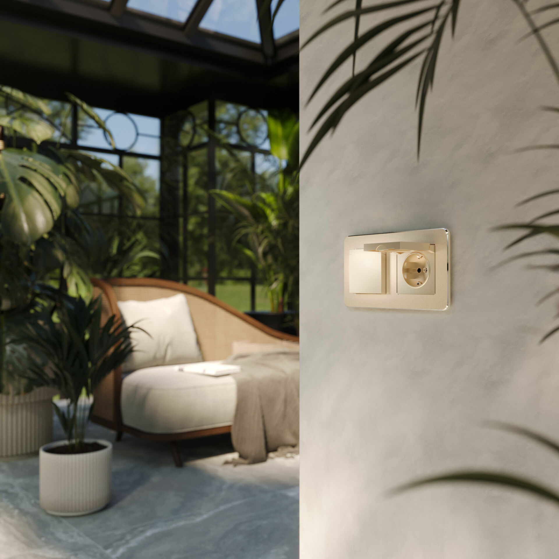 Werkel Розетка влагозащ. с зазем. с защит. крышкой и шторками N (шампань) W1171211
