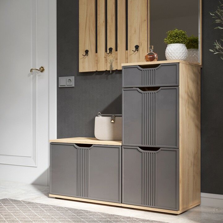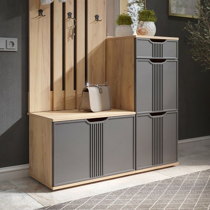 Тумба Эмилия ЭЛ-3 оснащена одним выдвижным ящиком, за дверьми расположены три полки для размещения обуви и других вещей. Сочетая тумбу с другими модулями из коллекции Эмилия, Вы можете создать стильную и лаконичную прихожую у себя дома. Фурнитура: телескопические направляющие полного выдвижения, петли с доводчиками.