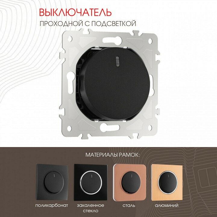 Выключатель проходной одноклавишный с подсветкой без рамки Arte Milano 202 202.33-1.black