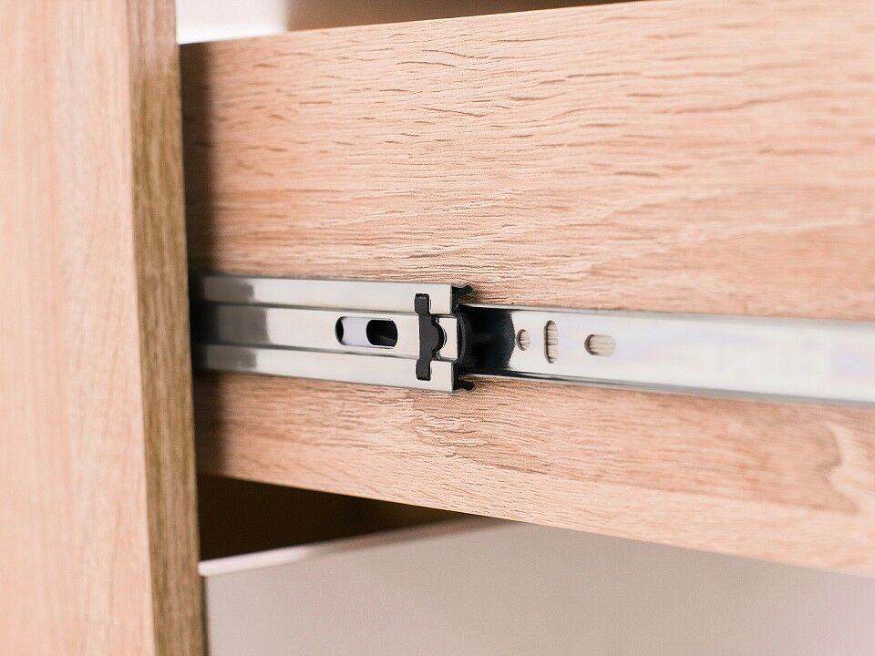края отделаны кромкой ПВХ 0.4 мм материал ручки - хромированный металл с матовым покрытием длина ручки - 128 мм тип направляющих - шариковые полного выдвижения