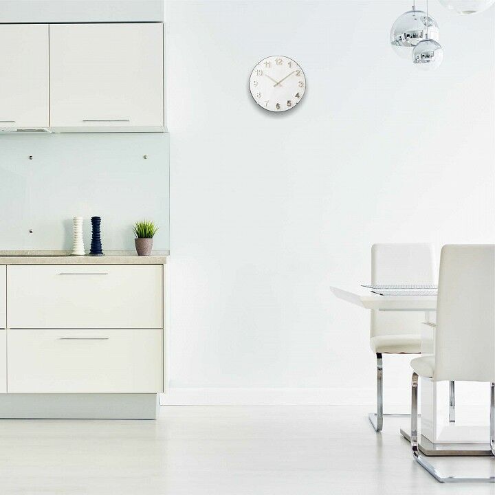 бесшумный плавный механизм, стрелки под стеклом, временные рамки обозначены арабскими цифрами