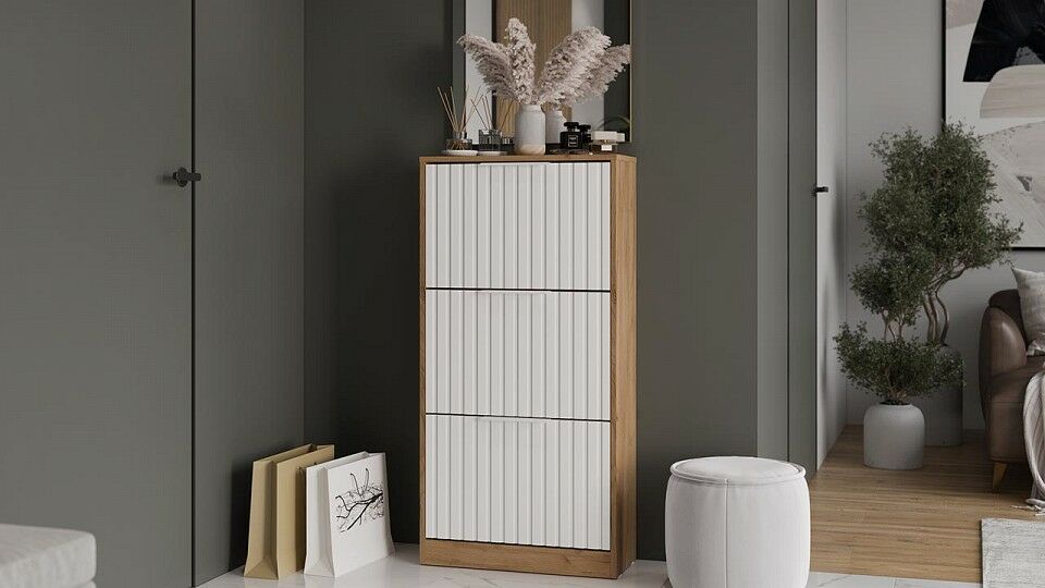 Направление открытия дверц - вниз. Материал механизма обувницы (боковых стенок ящиков) - пластик.