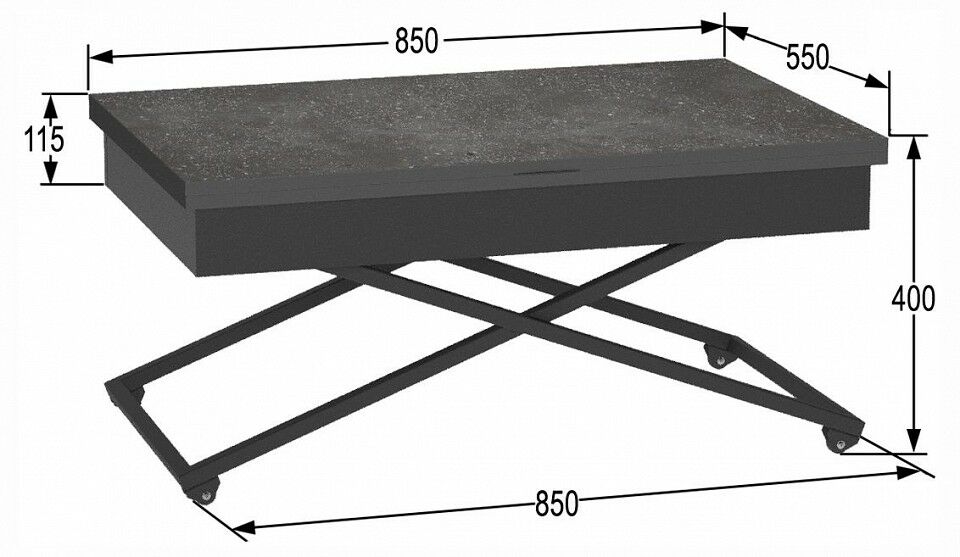 Стол универсальный трансформируемый АНДРЭ Loft - функциональный предмет мебели. Его можно поставить как на кухне, так и в гостиной. Подобный стол отлично впишется в интерьер помещения. Стол АНДРЭ Loft - грамотное решение для размещения большого количества вещей при экономии пространства в помещении, так как он имеет раскладную конструкцию. Это очень универсальный элемент, который выполняет разные функции. Стол можно использовать и для приема пищи, и для отдыха за прочтением книги с чашечкой кофе, и даже вместо обычной тумбы. Особенностью такого предмета мебели является его способность трансформироваться: за считанные секунды можно увеличить столешницу или поменять высоту. Вы можете выбирать одно из четырех положений стола. Размеры столешницы в сложенном состоянии 850x550 мм, в разложенном - 1100х850 мм. По высоте стол имеет два положения: 400 мм и 725 мм. Ножки стола выполнены из прочного металлического профиля 20x20, столешница- из ЛДСП марки Ламарти 16 мм. Стол на прорезиненных роликовых опорах, что без труда позволит перемещать его в помещении, при этом не царапая и не повреждая напольное покрытие. Так, один предмет мебели может выполнять большое количество функций и по-разному преображаться. Продукция поставляется в разобранном виде, упакованная в гофрокартон. В комплект входит вся необходимая фурнитура и удобная инструкция для сборки.