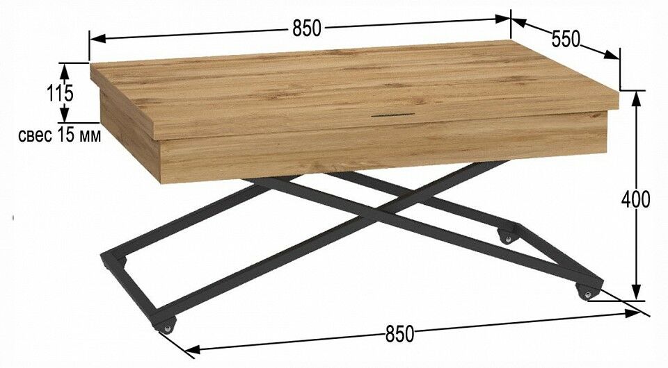 Стол универсальный трансформируемый АНДРЭ Loft - функциональный предмет мебели. Его можно поставить как на кухне, так и в гостиной. Подобный стол отлично впишется в интерьер помещения. Стол АНДРЭ Loft - грамотное решение для размещения большого количества вещей при экономии пространства в помещении, так как он имеет раскладную конструкцию. Это очень универсальный элемент, который выполняет разные функции. Стол можно использовать и для приема пищи, и для отдыха за прочтением книги с чашечкой кофе, и даже вместо обычной тумбы. Особенностью такого предмета мебели является его способность трансформироваться: за считанные секунды можно увеличить столешницу или поменять высоту. Вы можете выбирать одно из четырех положений стола. Размеры столешницы в сложенном состоянии 850x550 мм, в разложенном - 1100х850 мм. По высоте стол имеет два положения: 400 мм и 725 мм. Ножки стола выполнены из прочного металлического профиля 20x20, столешница- из ЛДСП марки Ламарти 16 мм. Стол на прорезиненных роликовых опорах, что без труда позволит перемещать его в помещении, при этом не царапая и не повреждая напольное покрытие. Так, один предмет мебели может выполнять большое количество функций и по-разному преображаться. Продукция поставляется в разобранном виде, упакованная в гофрокартон. В комплект входит вся необходимая фурнитура и удобная инструкция для сборки.