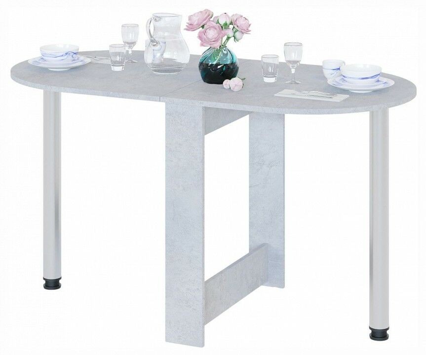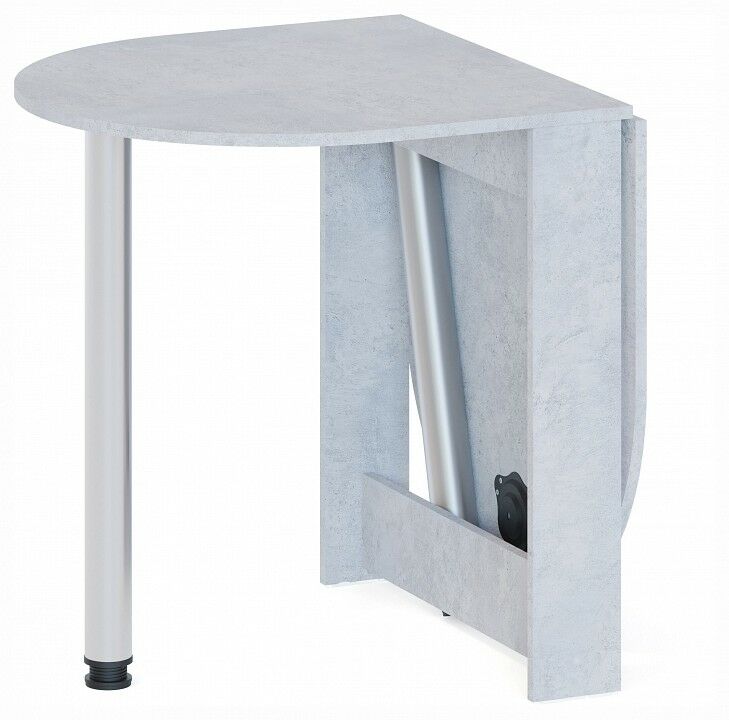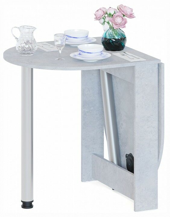 Стол-книжка СП-18 прекрасно дополнит интерьер небольшой кухни или гостиной, благодаря своей функциональности и компактным размерам. Модель в сложенном виде поможет организовать комфортное место для приема пищи или работы за ноутбуком, при этом ножка хранится в специальной нише в основании стола. При необходимости изделие быстро и без усилий можно разложить до полноценного обеденного стола, подняв одну половину столешницы и прикрутив к ней ножку. Хромированные опоры с возможностью регулировки по высоте обеспечивают надежность и устойчивость конструкции, а скругленные углы и овальная форма рабочей поверхности исключают травмоопасность. Ширина столешницы в разложенном состоянии — 1348 мм, в сложенном — 690 мм. Обращаем внимание! У стола опускается только одна половина и его нельзя сложить в узкую тумбу. Материал: ЛДСП 16 мм, кромка ПВХ 0,4 мм. Материал опор: металл. Максимальная нагрузка: 20 кг.