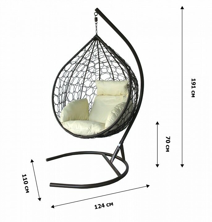 труба - O42, толщина мягкого элемента - 150, тип подвеса - металлическая цепь , толщина металла - 3, использование на открытом воздухе - да, от пола до сиденья 70 см, условия хранения - не ниже +2С, относительная влажность воздуха 40% - 75%
