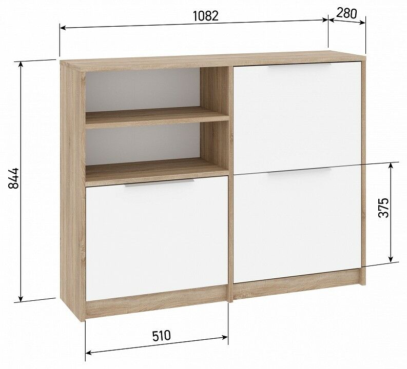 1 дверцы, 2 полки, 2 полки для обуви, 3 дверцы