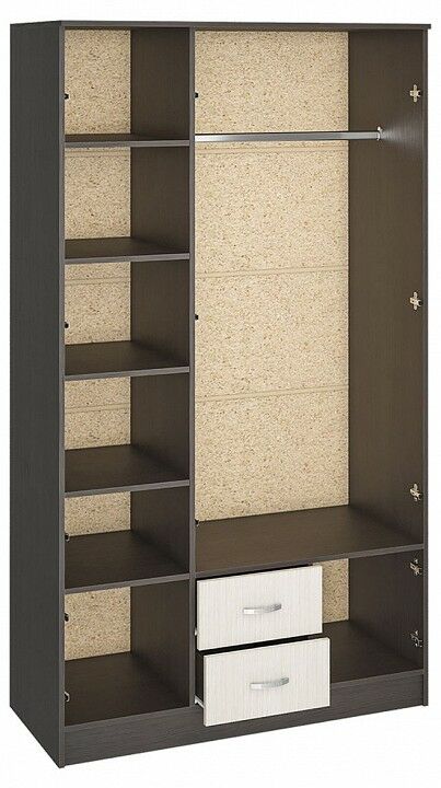 1 штанга для вешалок, 2 ящика, 5 дверц, 6 полок