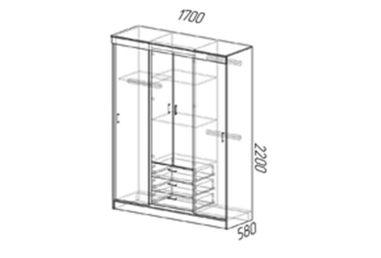 3 штанги для вешалок, 3 ящика, 4 дверцы, 4 полки