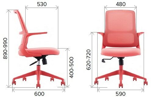 высота сиденья - 400-500 мм, ширина сиденья - 480 мм, глубина сиденья - 530 мм
