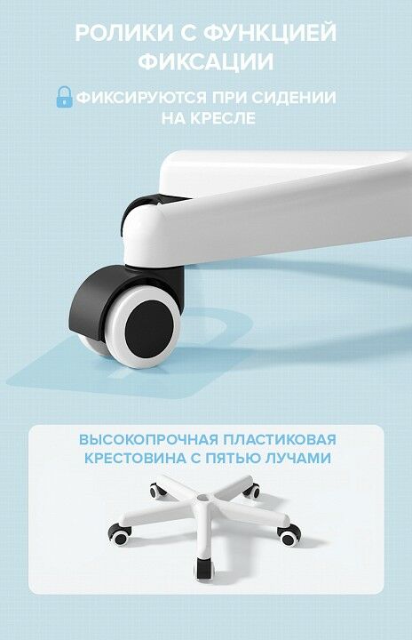 Подлокотники пластиковые, регулируемые (откидывающиеся). Механизм - пиастра. Ролики белые. С функцией фиксации под нагрузкой. Для паркета. Диаметр штока 11 мм. Каркас немонолитный. Детское кресло Flip – это идеальное решение для создания комфортного рабочего пространства вашего ребенка. Модель оснащена откидными пластиковыми подлокотниками, которые позволяют оптимально настроить пространство для занятий или отдыха, обеспечивая максимальную свободу движений. Кресло для ребенка с откидными подлокотниками отличается повышенным удобством благодаря продуманной поясничной поддержке, которая помогает формировать правильную осанку и снижает нагрузку на спину во время длительного сидения. Обивка из ткани и сетки не только эстетична, но и обеспечивает отличную вентиляцию, что особенно актуально в теплое время года. Наполнитель из вспененного полиуретана плотностью 22-25 кг/куб.м добавляет мягкости и поддерживает комфорт даже при длительном использовании. Механизм пиастра с регулировкой высоты сидения позволяет легко настроить кресло под рост ребенка, а прочный газлифт гарантирует надежность и долговечность конструкции. Особенностью этой модели являются белые ролики с функцией фиксации под нагрузкой, идеально подходящие для паркета, что обеспечивает устойчивость и предотвращает скольжение. Пластиковая крестовина дополнительно увеличивает надежность кресла и выдерживает нагрузку до 100 кг. Кресло с фиксирующимися роликами и тканевой обивкой – это не просто предмет мебели, а забота о здоровье и удобстве вашего ребенка. Детское кресло с регулировкой высоты станет надежным спутником для учебы и творчества, обеспечивая комфорт в течение всего дня.