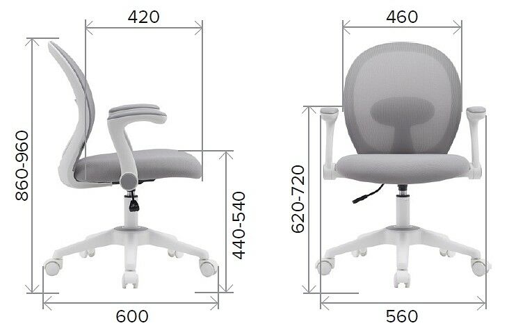 высота сиденья - 440-540 мм, ширина сиденья - 460 мм, глубина сиденья - 420 мм