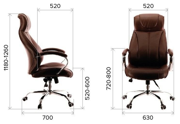 высота сиденья - 520-600 мм, ширина сиденья - 520 мм, глубина сиденья - 520 мм