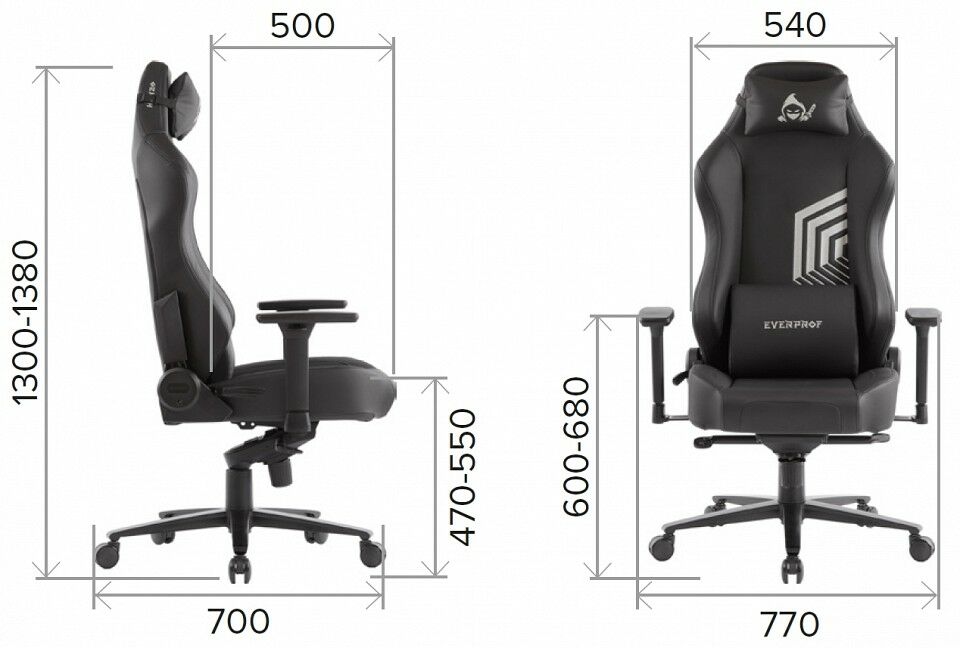 высота сиденья - 470-550 мм, ширина сиденья - 540 мм, глубина сиденья - 500 мм