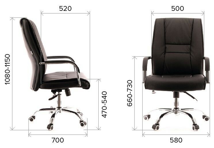 высота сиденья - 470-540 мм, ширина сиденья - 500 мм, глубина сиденья - 520 мм
