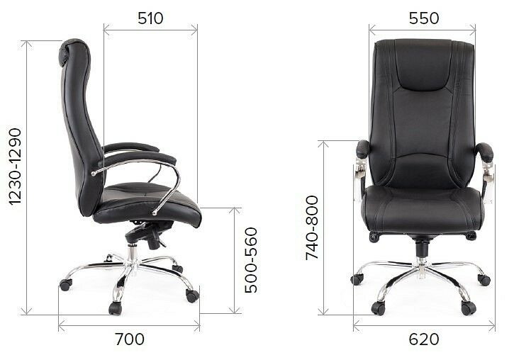 высота сиденья - 500-560 мм, ширина сиденья - 550 мм, глубина сиденья - 510 мм