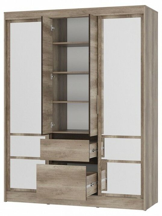 2 штанги для вешалок, 2 ящика, 4 дверцы, 4 полки