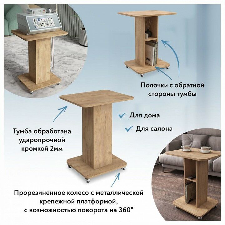 Универсальная устойчивая открытая подставка К-31 для салонов красоты, предназначена под использование различного вида процедур аппаратной косметологии. На компактной этажерке можно разместить все необходимые аксессуары для мастеров маникюра, депиляции, косметолога и парикмахерской, инструменты и принадлежности для профессионалов красоты. Она оснащена усиленными прорезиненными колесиками с металлической крепежной платформой и с возможностью поворота на 360 градусов. Ее легко перемещать по нужному месту, что обеспечит комфортное использование и эффективную организацию рабочего пространства. Максимальная функциональность, надежность и стильный дизайн - все это предлагает эта подставка, чтобы вы ощутили настоящий комфорт и эффективность при работе.