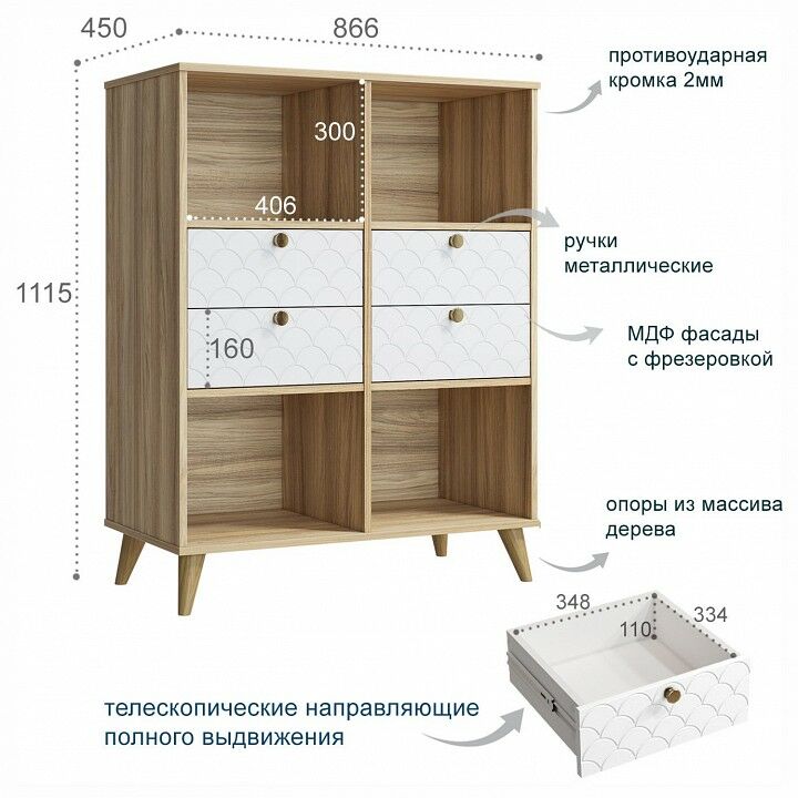 Тумба Велламо ВО-04 – это идеальное решение для хранения вещей, созданное дизайнерами, которые превратили функциональность в искусство. Подходит для разных помещений – от прихожей до спальни. Достаточное количество ящиков и полок позволит разместить книги, документы, различные вещи. Стильную и необычную тумбу можно использовать в спальне, зале, прихожей, детской комнате. Высокая комбинированная тумба ВО-04 на ножках не только обеспечивает место для хранения, но и может служить поверхностью для размещения декоративных элементов или предметов повседневного использования, вместительные ниши станут местом для декоративных корзин или органайзеров. Текстура корпуса и фасадов матовая, приятная на ощупь (soft touch). Высота ножек 120 мм. Дно ящика двп 3 мм. Фурнитура: телескопические направляющие полного выдвижения без доводчиков, ручки металл, опоры деревянные.