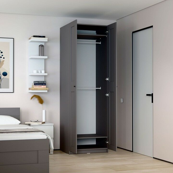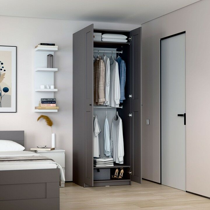 Шкаф МАКС для одежды двухдверный, 750х610х2330, цвет серый. Укомлектован двумя полками и штангой для вешалок. Изготовлен из кашированного ДСП толщиной 18 мм. Крепится к стене. Гарантийный срок для жилых помещений 24 месяца, для общественных помещений - 18 месяцев.
