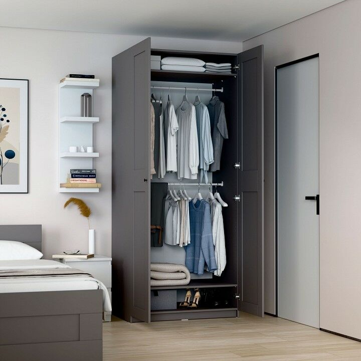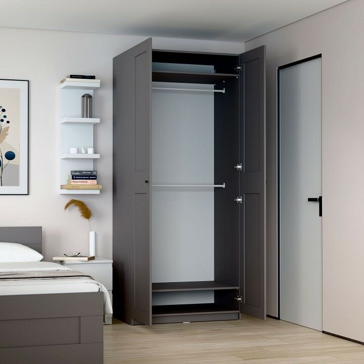 Шкаф МАКС для одежды двухдверный, 1000х610х2330, цвет серый. Укомлектован двумя полками и штангой для вешалок. Изготовлен из кашированного ДСП толщиной 18 мм. Крепится к стене. Гарантийный срок для жилых помещений 24 месяца, для общественных помещений - 18 месяцев.