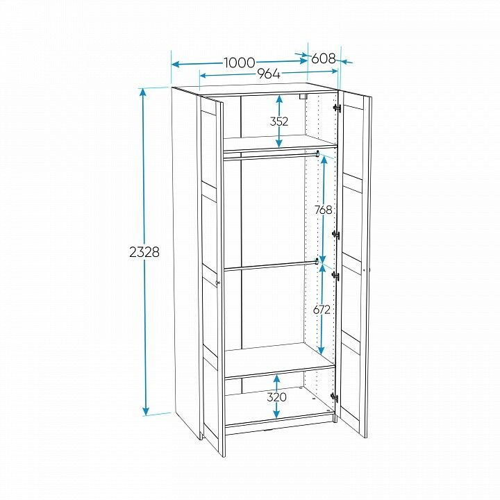 1 штанга для вешалок, 2 дверцы, 2 полки