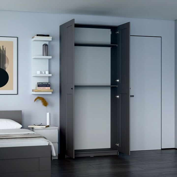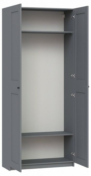 Шкаф МАКС для одежды двухдверный, 1000х380х2330, цвет серый. Укомлектован двумя полками . Изготовлен из кашированного ДСП толщиной 18 мм. Крепится к стене. Гарантийный срок для жилых помещений 24 месяца, для общественных помещений - 18 месяцев.