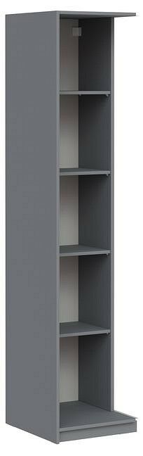 Стеллаж МАКС угловой 50х58х233, цвет Серый. Имеется возможность установки полок на желаемом уровне, нет штанги. Толщины деталей: ДСП 18 мм, перегородка 22 мм. Фурнитура: полкодержатель пластмассовый с фиксатором, уголки металлические для соединения с прилегающим стеллажем.