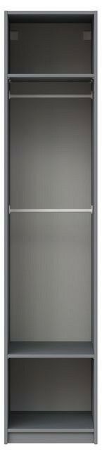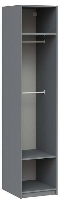 имеется возможность установки полок на желаемом уровне, имеется возможность установки штанги на желаемом уровне, фурнитура: полкодержатель пластмассовый с фиксатором, материал - ДСП, цвет - серый