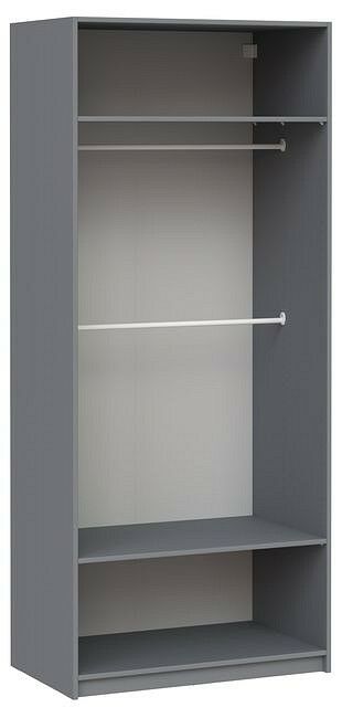 имеется возможность установки полок на желаемом уровне, имеется возможность установки штанги на желаемом уровне, фурнитура: полкодержатель пластмассовый с фиксатором, материал - ДСП, цвет - серый