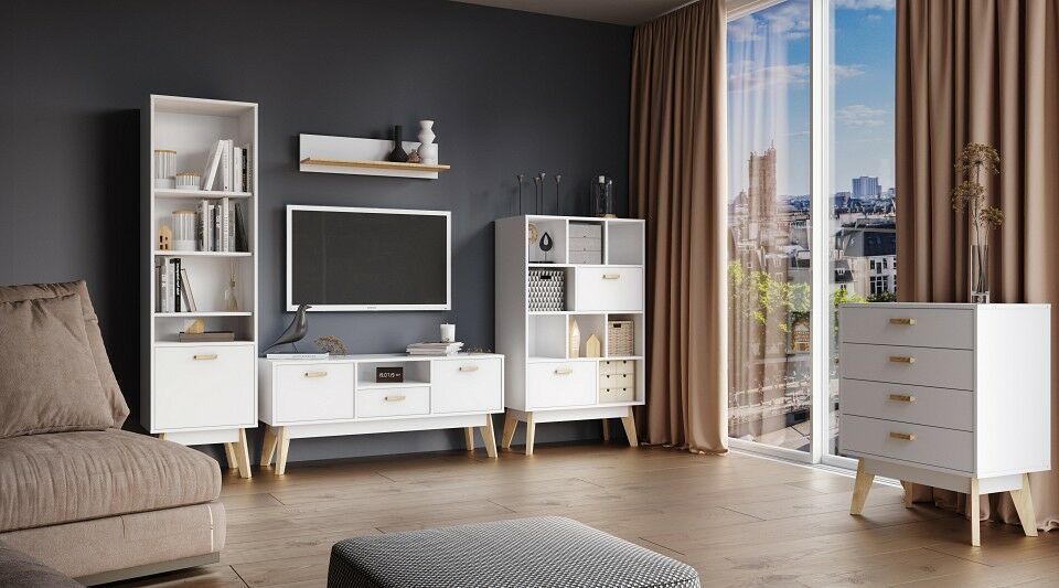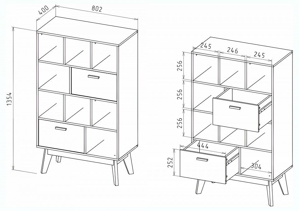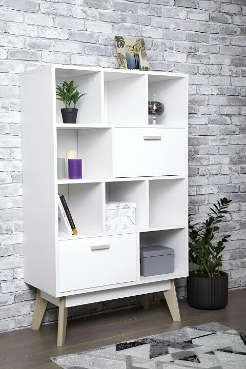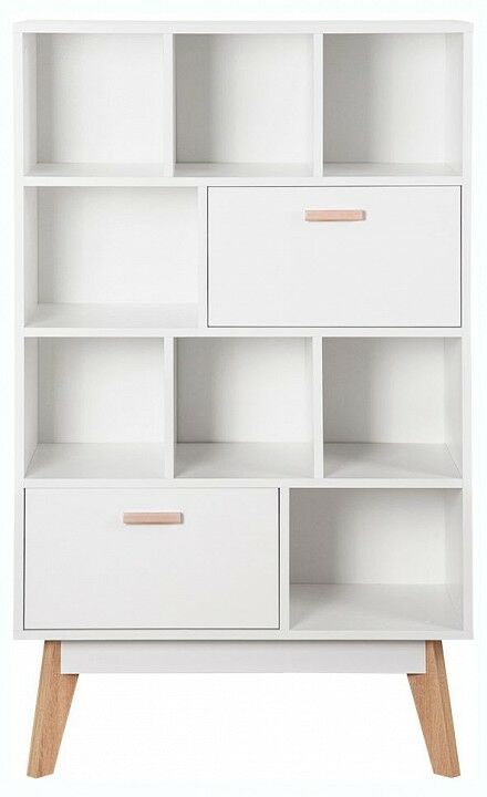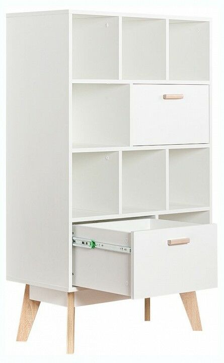 Стильный белый напольный стеллаж Радиорама 2104 в скандинавском стиле - это универсальный предмет мебели для хранения вещей, который будет органично смотреться в любой комнате квартиры, дома и дачи. Стеллаж универсальный его можно поставить в гостиной для сувениров и фотографий, на кухне для посуды, в детской для книг и игрушек, на балконе для цветов, в спальне для одежды, в кабинете для документов. Каждая открытая полочка может использоваться как книжная или для атмосферных сувениров, а закрытый ящик - для мелочей, которые легко потерять. Глубина напольного стеллажа узкая, всего 40 см, поэтому он займет минимум пространства и подойдет для малогабаритной комнаты или детской. В выдвижных деревянных ящиках можно разместить детские игрушки и одежду. На открытых полочках девочки могут расставить куклы, мальчики используют их как гараж для машинок, а школьники - как книжные. Если поставить стеллаж в кухню, то хранение посуды и различных приспособлений перестанет быть проблемой, а если в гостиную - то на него можно установить и телевизор.