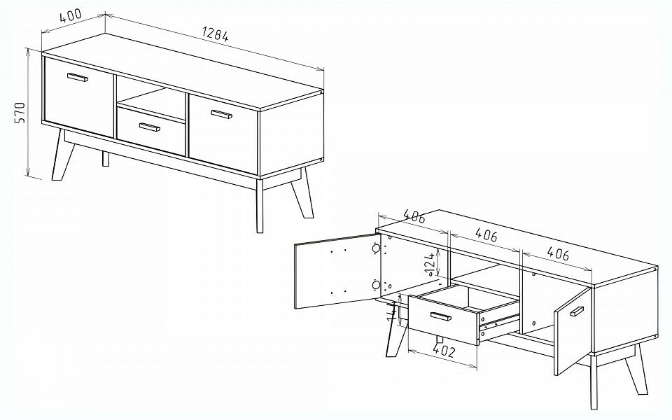 Количество полок: 1 шт., Тип направляющих: Шариковые., Тип открывания дверей: Распашные., Ручки: Дерево, бук., Задняя стенка: Оргалит., Подпятники: Войлок, 4 шт., Макс. нагрузка на полку: 50 кг.