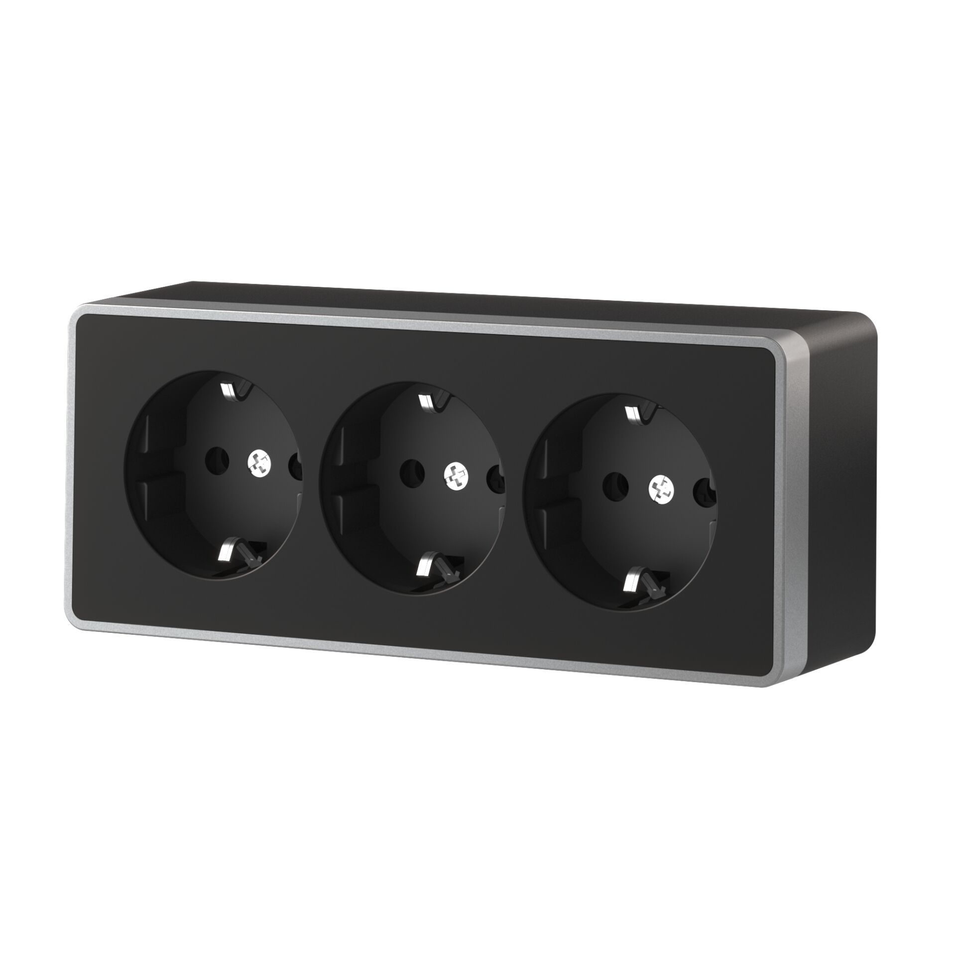 Werkel W5073134/ Розетка тройная с заземлением и шторками Gallant (черный с серебром) W5073134