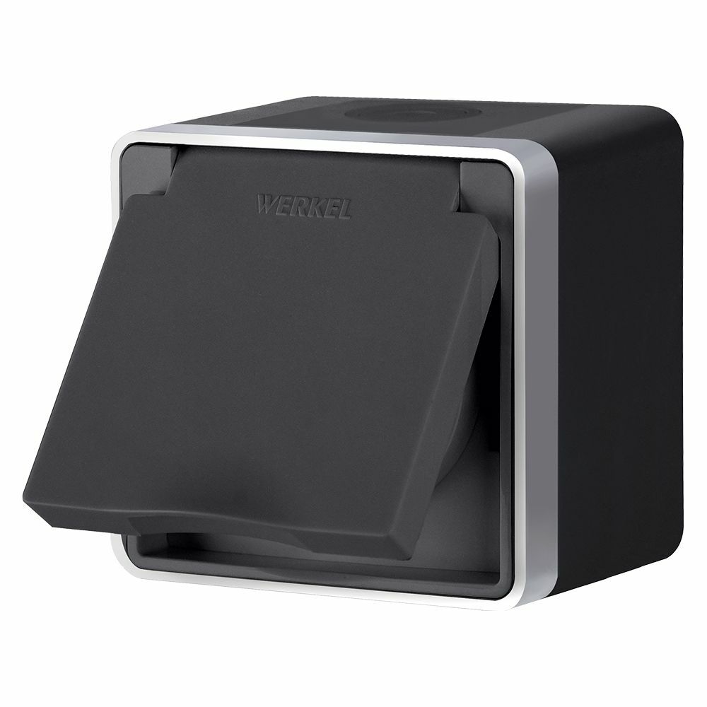 Werkel Розетка влагозащ. с зазем. с защит. крышкой и шторками Gallant черный с серебром W5071234 W5071234