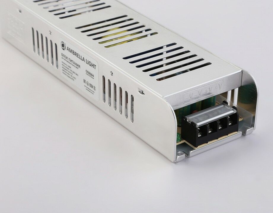 Блок питания с алюминиевым корпусом для светодиодных лент и прочих устройств с напряжением 24V. Устройство имеет надежную схему защиты от коротких замыканий, сетевых помех и скачков напряжения. Блоки питания коллекции ILLUMINATION используется для питания светодиодных изделий стабилизированным напряжением 24В (блок питания 24 вольт) для подсветки внутри сухих помещений. Блок питания должен быть мощнее чем светодиодная лента на 15-20%. Светодиодная лента подключается параллельно, отрезками не более чем по 5 метров каждый. Блок питания без влагозащиты.